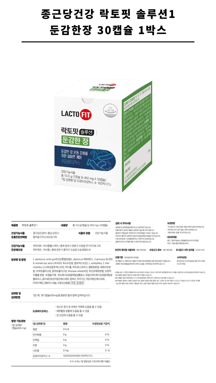 종근당건강 락토핏 솔루션1 둔감한장 30캡슐 1박스