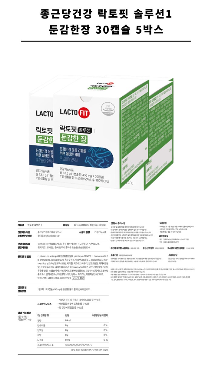 Chong Kun Dang Health Lacto Fit Solution 1 Insensitivity Hanjang 30 Capsules 5 Boxes / 종근당건강 락토핏 솔루션1 둔감한장 30캡슐 5박스