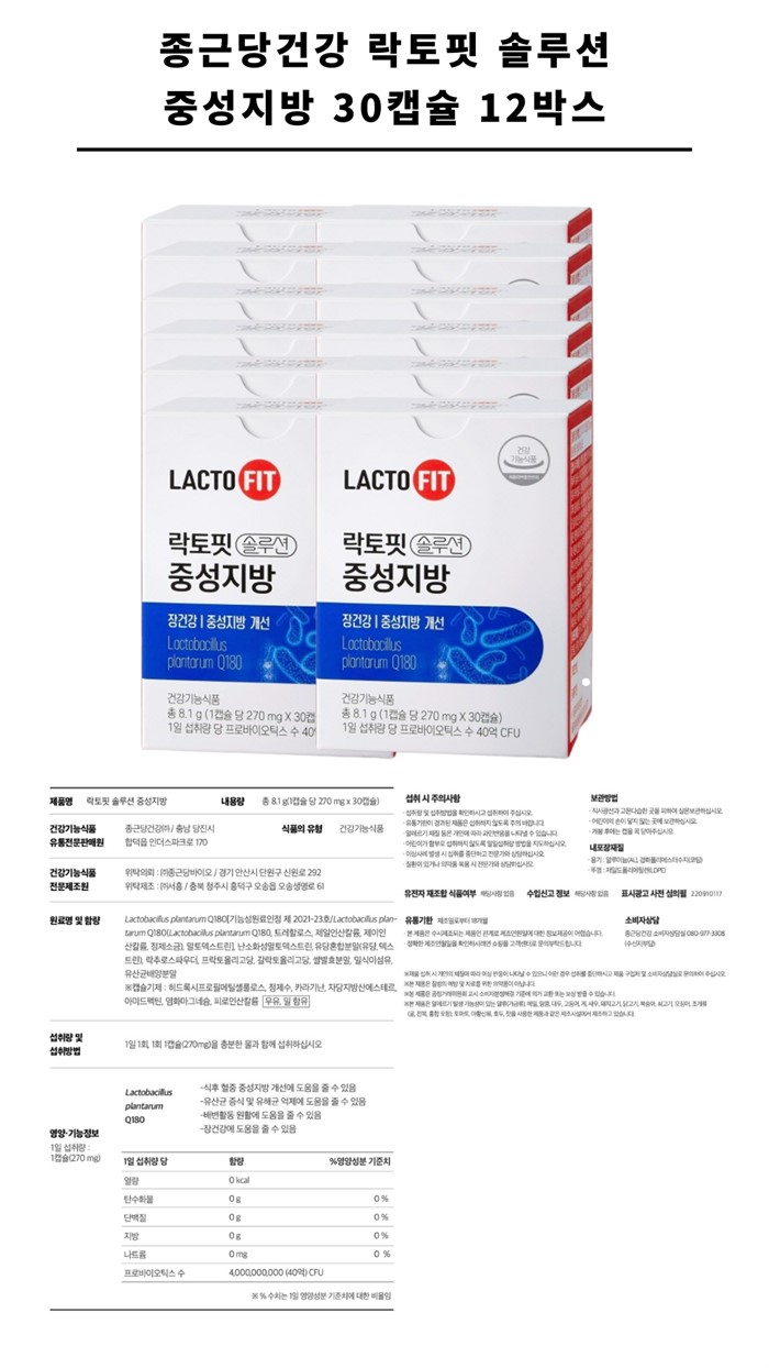 Chong Kun Dang Health Lactofit Solution Neutral Fat 30 Capsules 12 Boxes / 종근당건강 락토핏 솔루션 중성지방 30캡슐 12박스