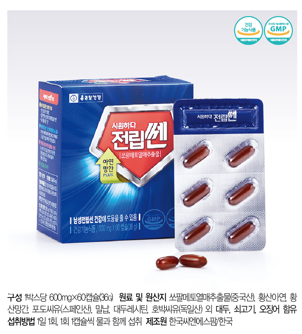 종근당건강 전립쎈 6박스(12개월분) / 1박스당 600mgx60캡슐(36g)