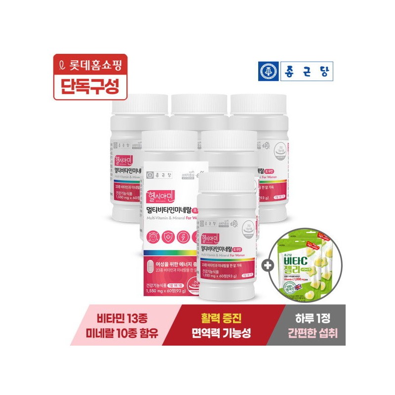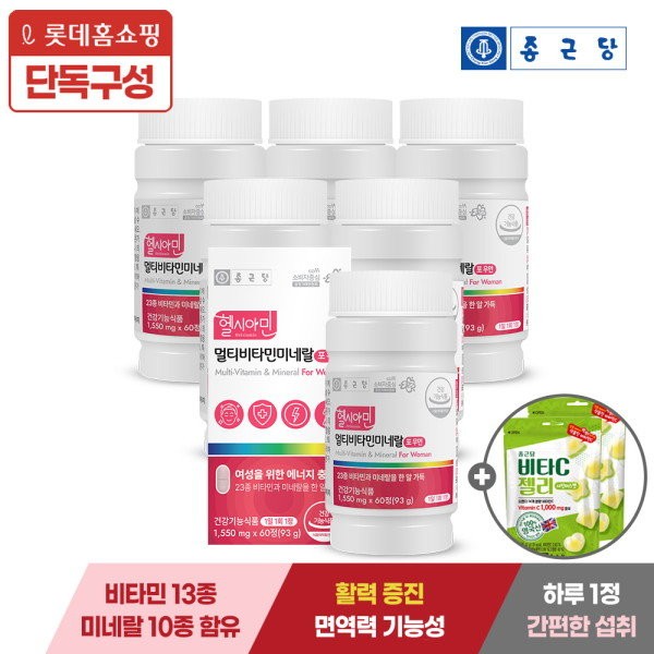 Chong Kun Dang Healthy Amin All-in-One Immune Multivitamin for Women 6 bottles (12 months supply) + Vitamin C / 종근당 헬시아민 올인원 이뮨 멀티비타민 포우먼 6병(12개월분)+비타민C