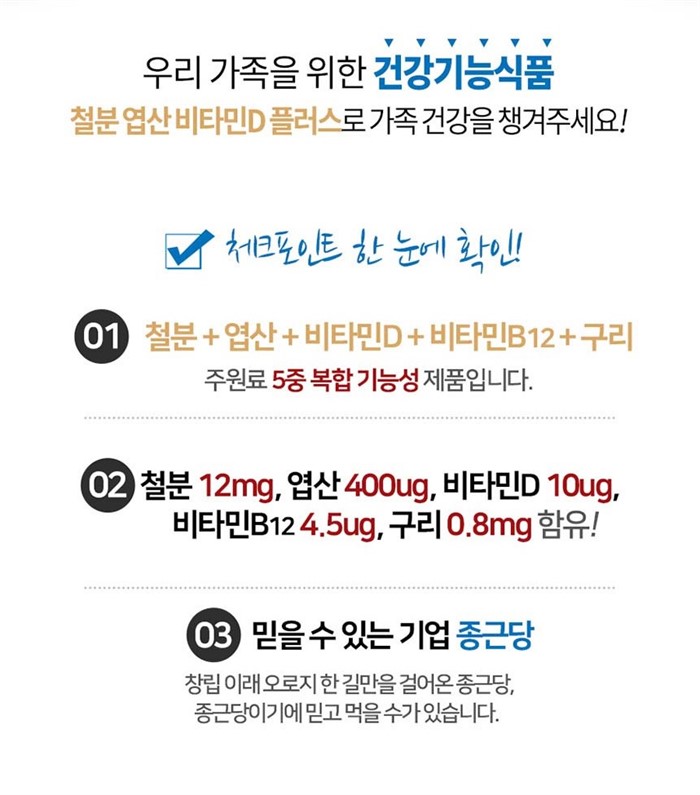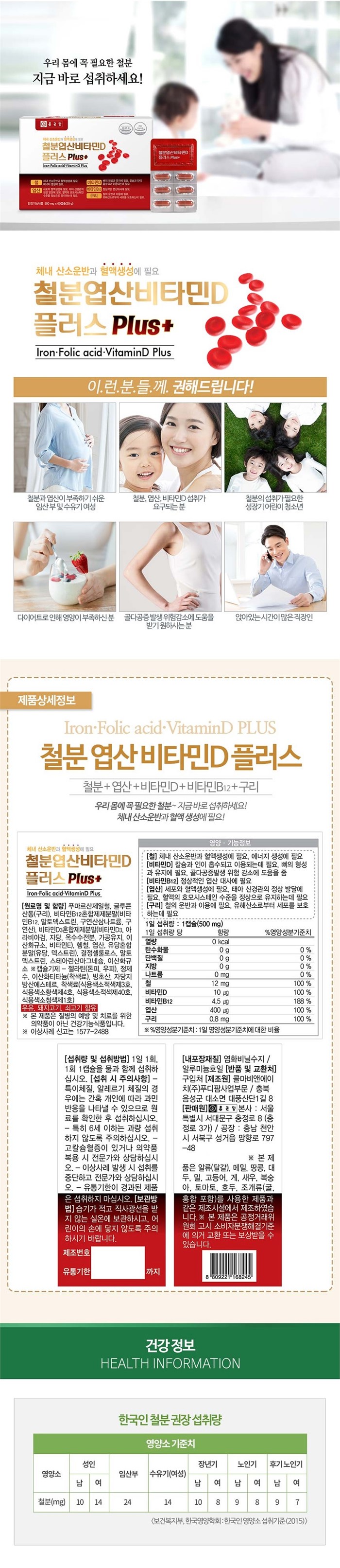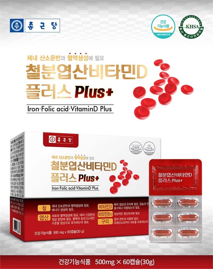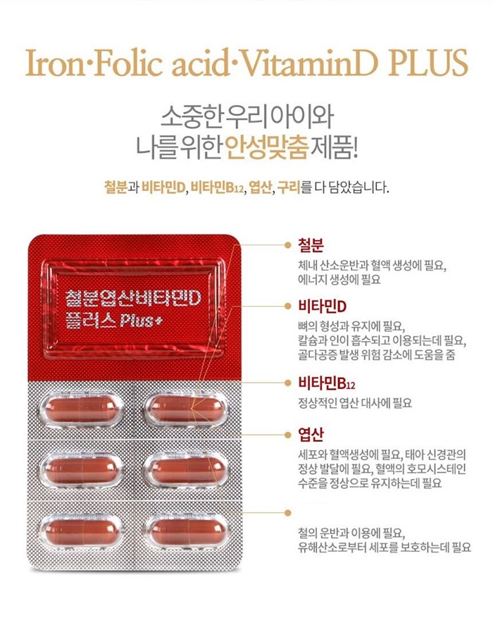 Chong Kun Dang Iron, Folic Acid, and Vitamin D Plus 2 Boxes / 종근당철분엽산비타민D플러스2박스