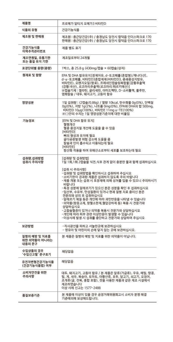 종근당 프로메가 알티지 오메가3 60캡슐 x 12박스