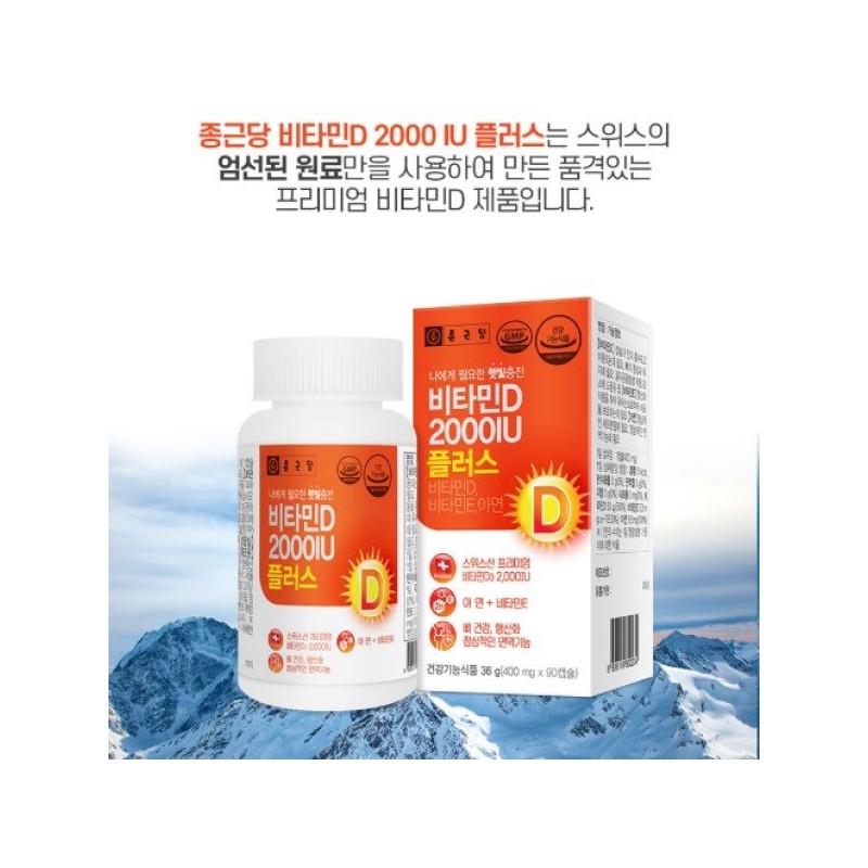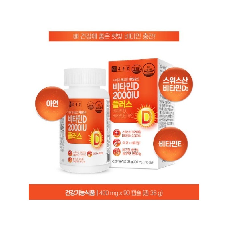 Chong Kun Dang Vitamin D 2000IU Plus 400mg x 90 capsules / 종근당 비타민D 2000IU 플러스 400mg x 90캡슐