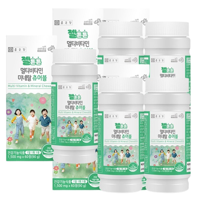 Chong Kun Dang Zeltonton Multivitamin Mineral Chewable 1500mg / 종근당 젤튼튼 멀티비타민 미네랄 츄어블 1500mg X 5통 성장기 유아를 위한 초록이
