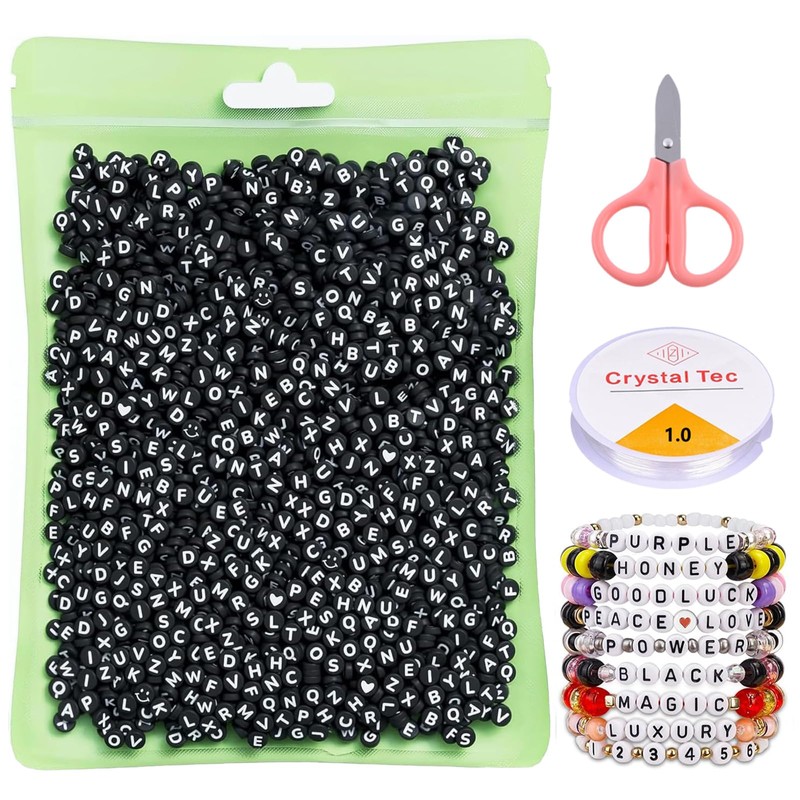 - ALL-IN-ONE LETTER BEADS SET: Package includes 800 Pcs letter beads for jewelry making, which contains alphabet beads (A-Z) 28 Pcs each, 36 Pcs happy face beads, 36 Pcs heart beads, a roll of 4 meter elastic rope and a scissor, to meet your needs for different bracelet making & jewelry making.