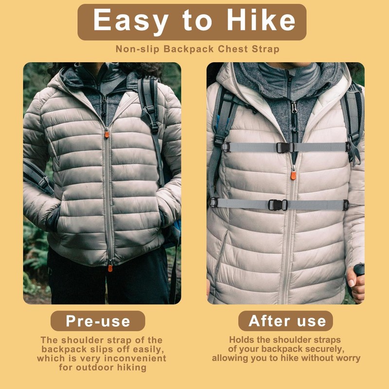 - Widely used: the chest strap with buckle is suitable for most backpacks and is ideal for outdoor activities such as mountaineering, camping, hiking, jogging, cycling, etc. It effectively prevents the backpack from slipping and relieves the shoulders, so you can easily do outdoor activities.