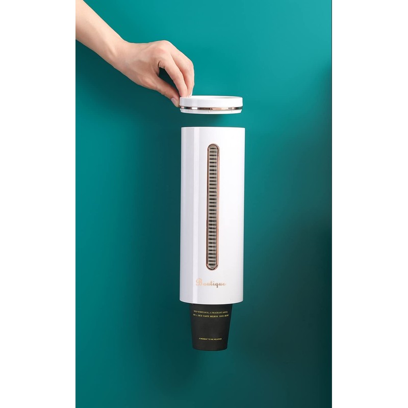 CONVENIENT This is a cup dispenser that can easily take out the cups individually. Simply open the lid on the top of the cup dispenser to put the paper cups in, making it easier to organize and store the cups.