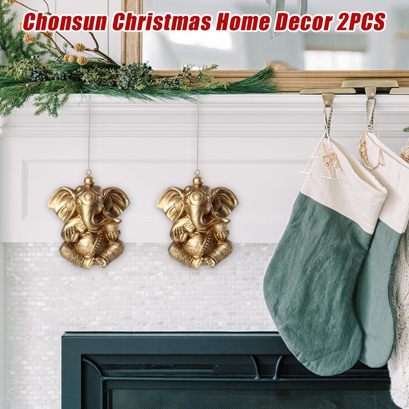 Chonsun 2 PCS Christmas Ornaments Sets Christmas Gold Elephant Hanging Decor Mini Elephant for Home Office Christmas Tree Decoration