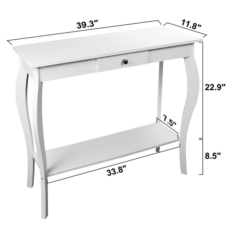 ChooChoo Narrow Console Table with Drawer, Chic Accent Sofa Table, Entryway Table, 39.3 Inch, White