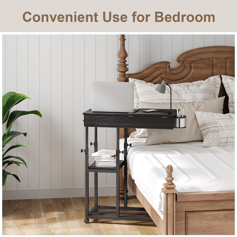 - [ Easy Movement & Fixation ]: This height-adjustable standing table is equipped with flexible caster wheels that allow for easy movement and locking. Whether used as a couch desk in the living room or an end table in the bedroom, it adapts effortlessly to different settings