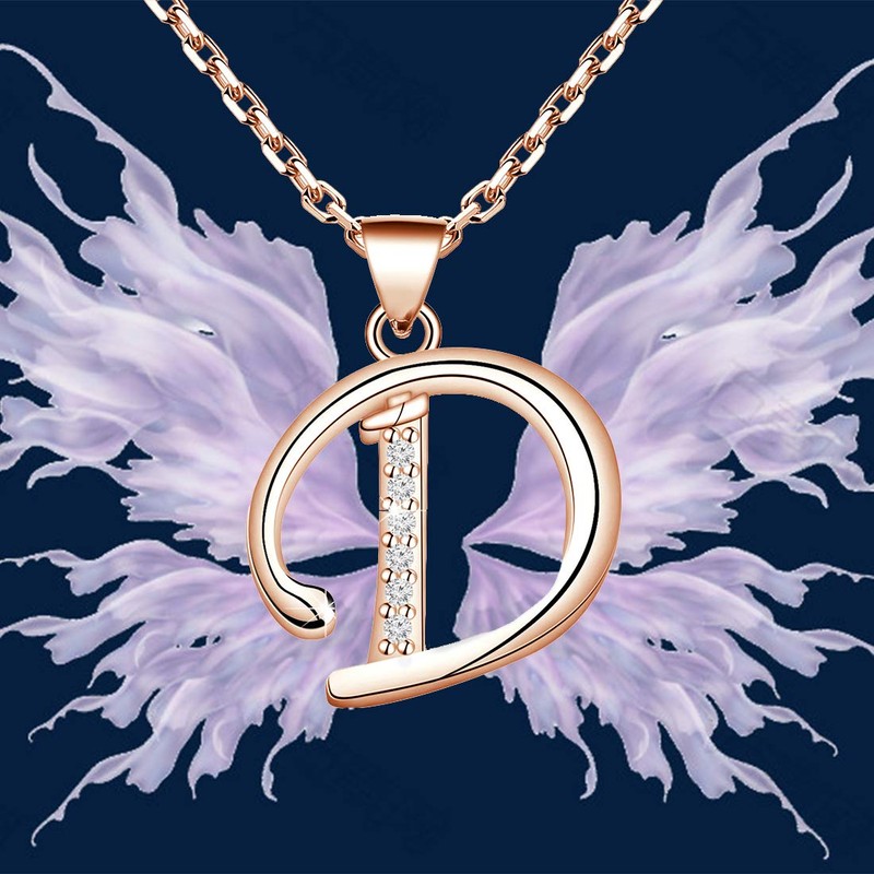 CHOORO Dainty Script Rose Gold Initial Necklace 26 Alphabet Letter Pendant Zircon Necklace Name Necklace Bridesmaid Jewelry Gift (D)