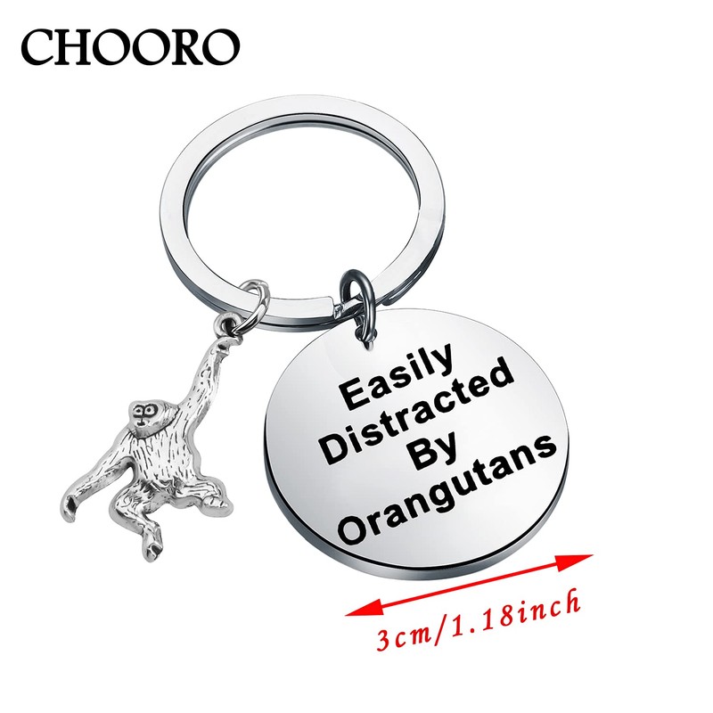 - Engraved with the phrase "Easy Distracted By Orangutan". We only stamp on one side of the keychains