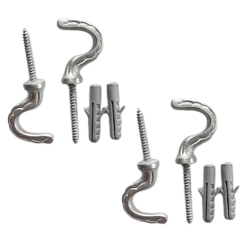 - ''' Includes 4 Silver Color Brass Metal Hooks#||# Each Hook Measures 2.5 Long and Sticks out from the Wall 1.25#||# Adds a decorative accent to any room#||# Mounting hardware included'''