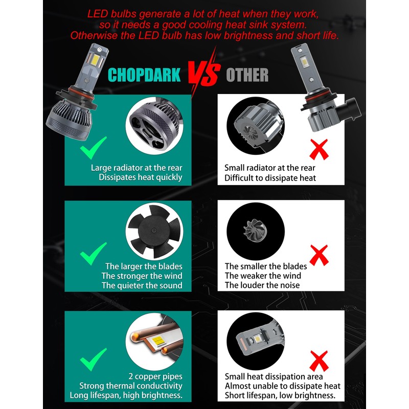 - Long Lifespan: Heat limits the brightness and service life of LED bulbs. So heat dissipation is very important. This 9006 HB4 LED bulb uses a multiple cooling design: 2 Thermally Conductive Copper Tubes and pure copper substrate, heat transfer faster. Aviation aluminum body, overall heat dissipation. High speed fan for rapid heat removal