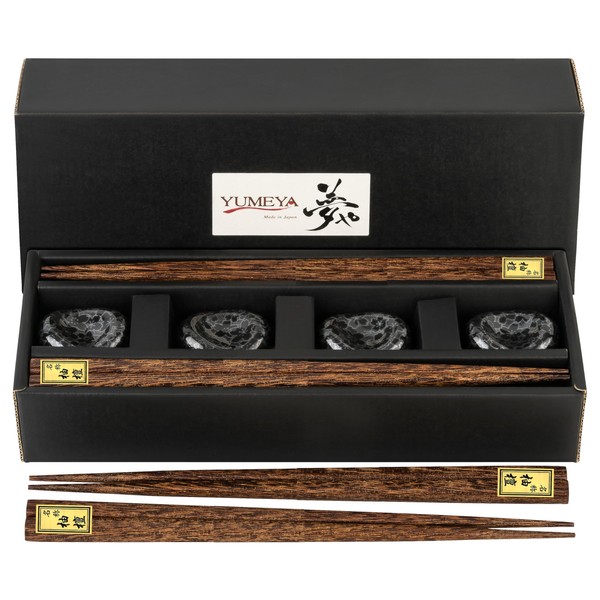 - New design. 4 pairs of chopsticks including porcelain chopsticks (Hashioki) printed with Japanese cherry blossoms Sakura in grey and black