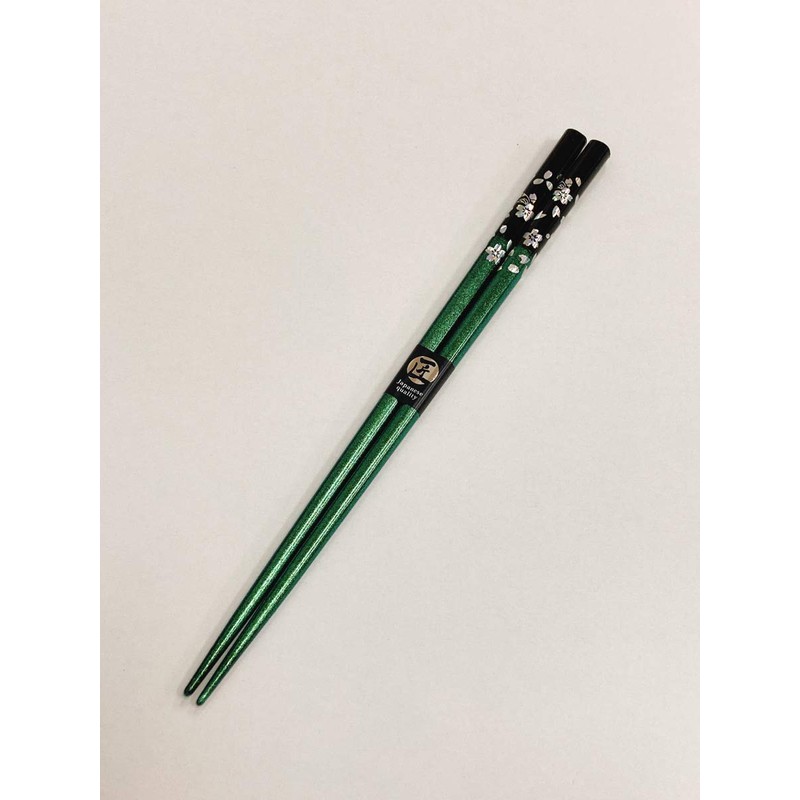 Chopsticks, Silver Cherry Blossoms, Green, Paulownia Box, Wrapping, Father's Day, Present (P-2)