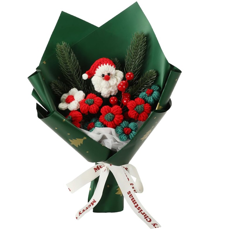 Chordobe Christmas Handmade Crochet Flower - Artificial Flower Bouquet Knitted Bouquet for Home Decoration Table Centerpiece