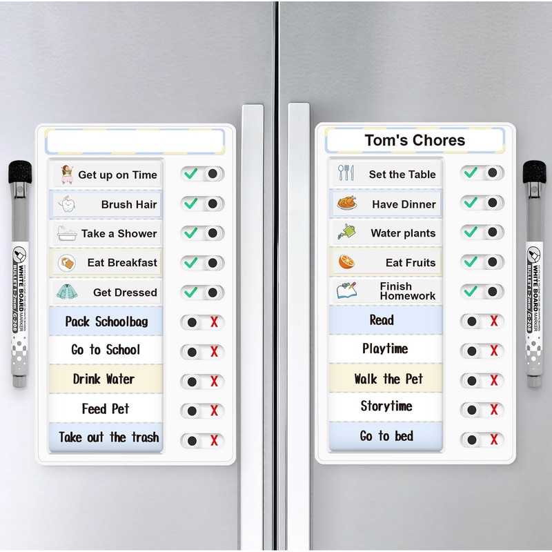 Chore Chart for Kids – Daily Routine Chart, Morning/Bedtime Checklist, Magnetic to Do List, Dry Erase Visual Schedule, and Slider Chart for Fridge