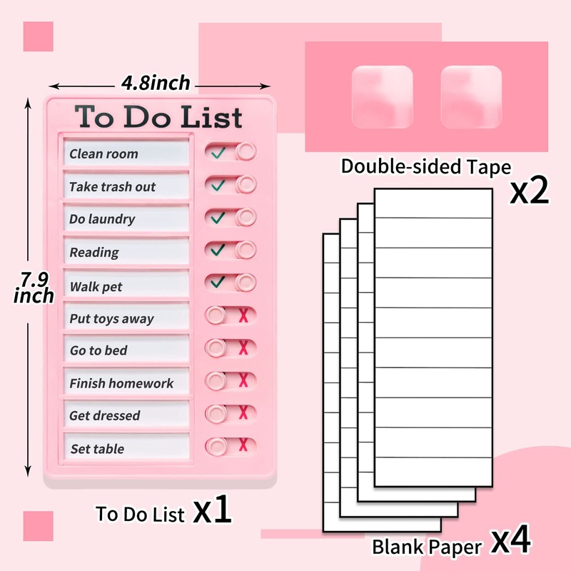Chore Chart for Kids,To Do List, Daily Routine Chart, and Schedule Board-Checklist and Portable Memo for Efficient Task Management and Planning (pink)