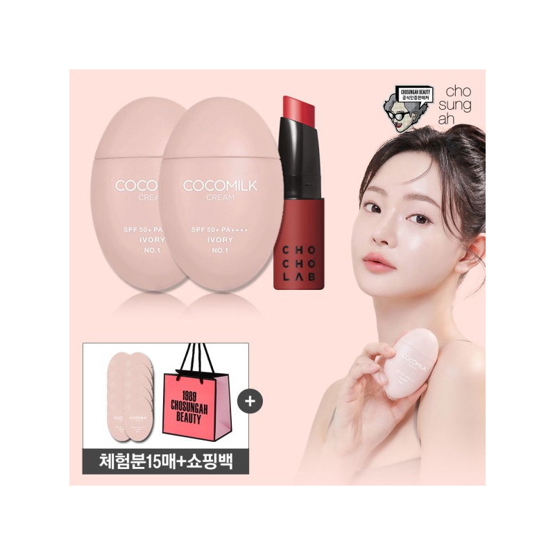 Chosung-a TM [Complexion Cream] Chosung-a TM Coco Milk Tone-up Cream 50gx2+Lipstick (Random)+Sifter / 조성아티엠 [안색크림]조성아TM 코코밀크 톤업크림 50gx2+립스틱(랜덤)+체
