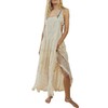 chouyatou Women's Lace Embroidered Tiered Maxi Dress Casual Suspender Strap Bib Overall Jumper Dress (Medium, Apricot)