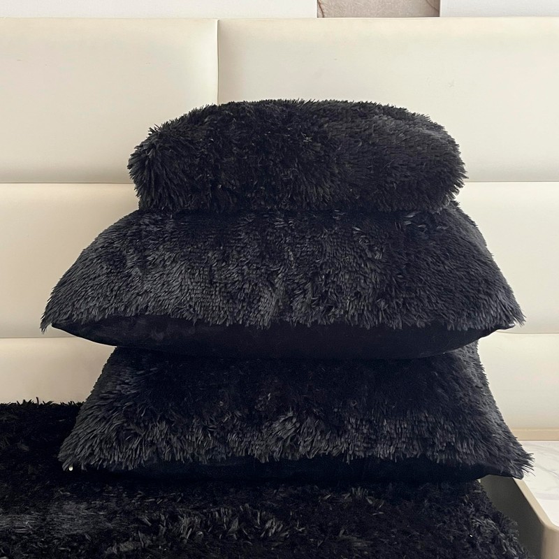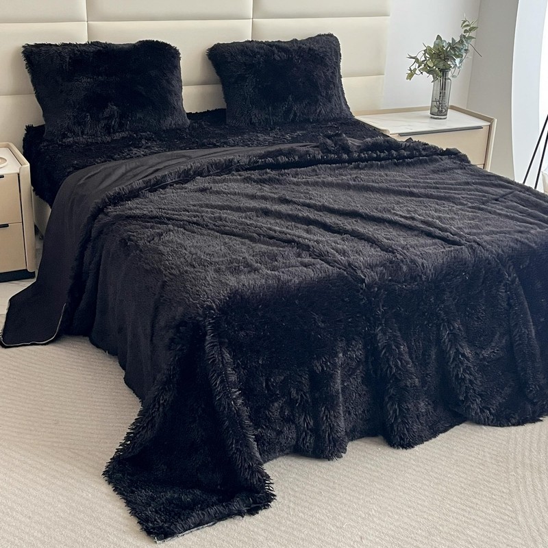 - Product Materials:The front of the comforter and pillow cases are made of plush, which is beautiful and unique. The back is made of faux fur filled with rain cotton, very soft and warm.