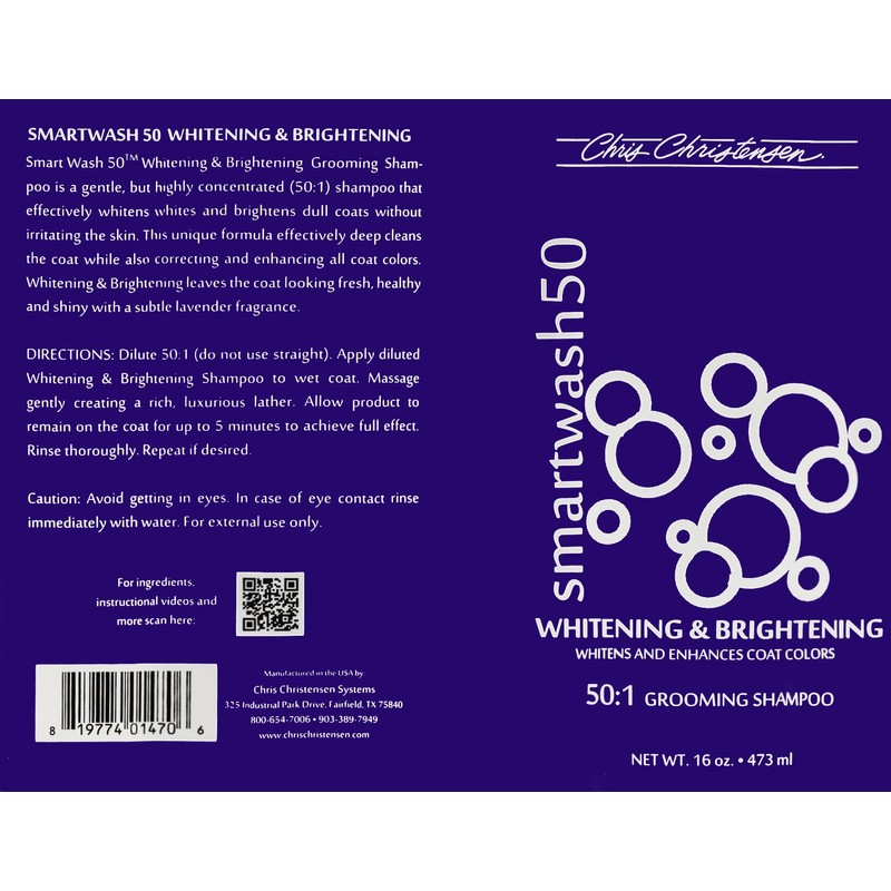 - PROFESSIONAL GRADE WHITENING SHAMPOO: Chris Christensen Smartwash50 Whitening & Brightening Shampoo offers a professional-grade solution for achieving a whiter and brighter coat.