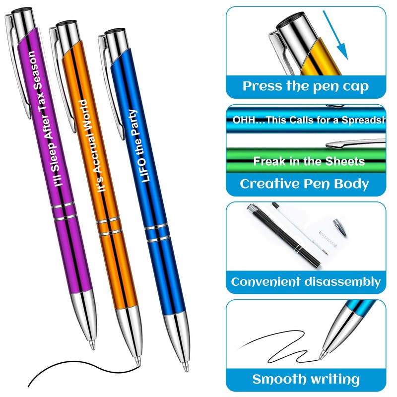 • Suitable Size: these accounting firm pens with funny sayings are measuring approx. 14 cm/ 5.51 inches in length and approx. 1 cm/ 0.39 inches in diameter, for each piece, suitable size makes it easier to be put into bags and carried around. Suitable for both men and women to grip and use