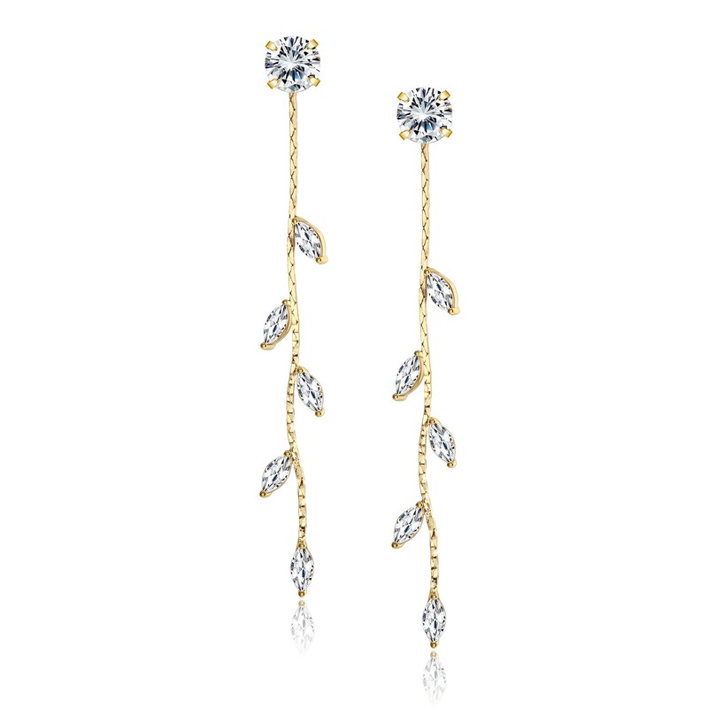 Chriscoco Leaf Drop Earrings for Women 925 Sterling Silver Post Hypoallergenic Wedding Bridesmaid Bridal Earrings Cubic Zirconia Crystal Long Dangle Earrings Gold Drop Earrings for Women Girls