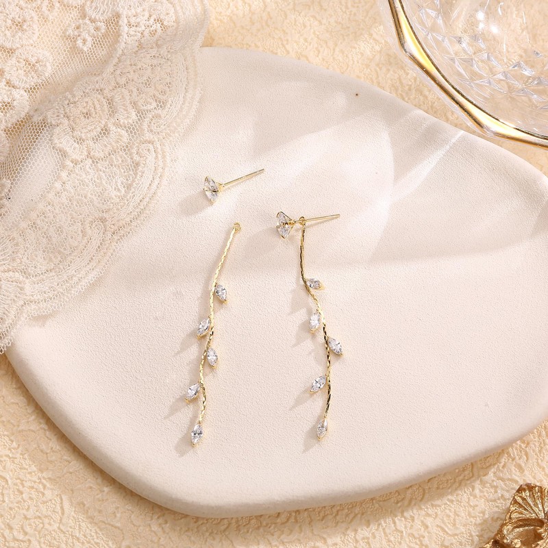 - 💖【Design】-- Elevate your elegance with our leaf drop earrings. Crafted in a leaf design, these long cubic zirconia chandelier pendants are perfect for a garden or spring wedding. Ideal for brides, bridesmaids, and women seeking exquisite crystal long earrings for parties and proms.