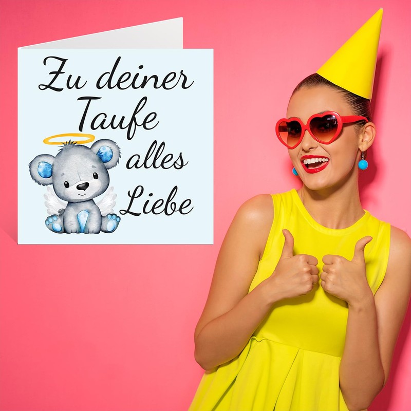 - MAKE HER SMILE WITH THIS HAPPY CHRISTENING CARD FOR HIM: This exceptional quality Christian baptism card for him features the imprint "Zu deiner Taufe alles Liebe". If you are looking for beautiful Christian greeting cards for friends, then these cheerful religious gifts are sure to make them smile. This could be a christening card for son, godson, brother, nephew, cousin, grandson or friend.