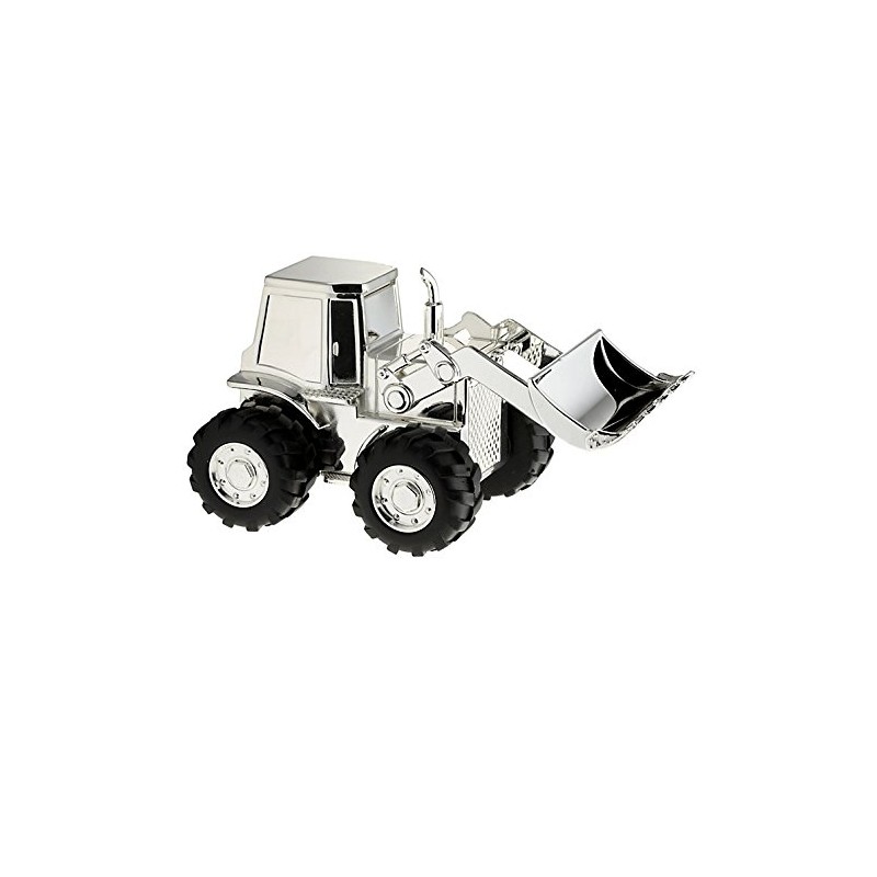 - Ideal for Christening Silver Plated Digger money box Tractor