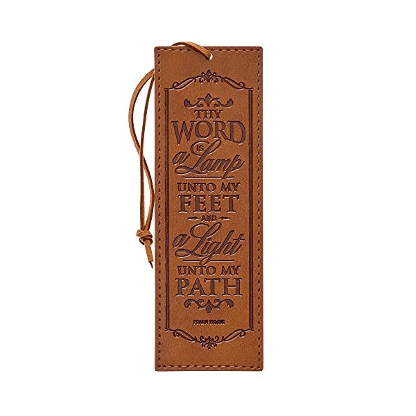 Christian Art Gifts Toffee Brown Faux Leather Bookmark: Thy Word is a Lamp Unto My Feet - Psalm 119:105 Inspirational Bible Verse with Cord