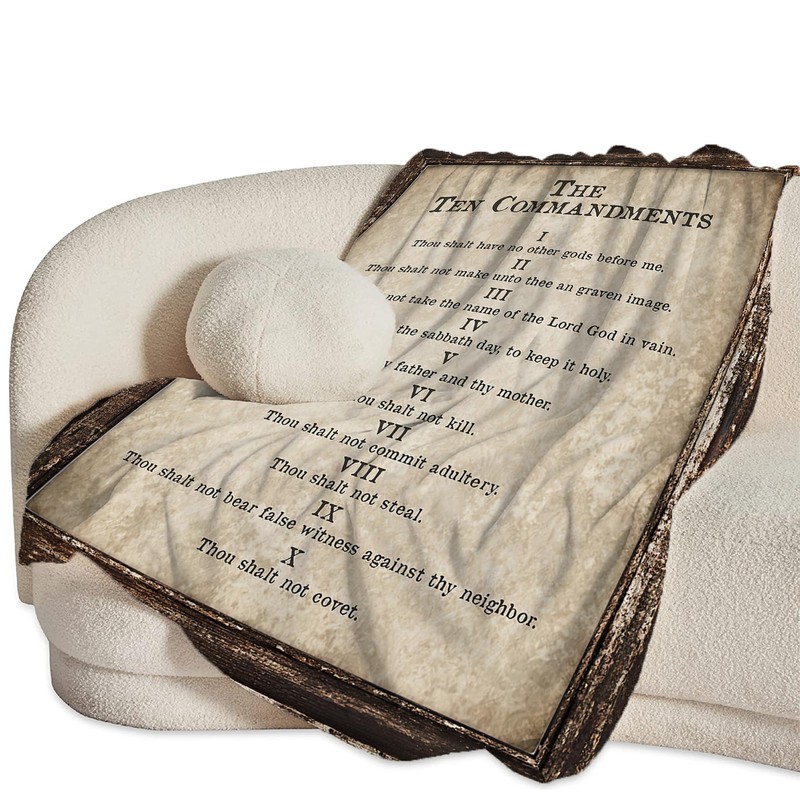 Christian Bible Blanket 10 Commandments Throw Blanket Christian Gifts and Decor Religious Bible Verse Blanket for Women Men Girls Boys Soft Warm Cozy Fleece Blanket for Couch Sofa Bed 50"x40"