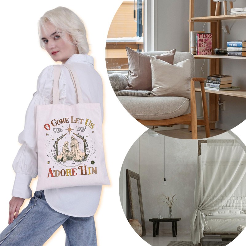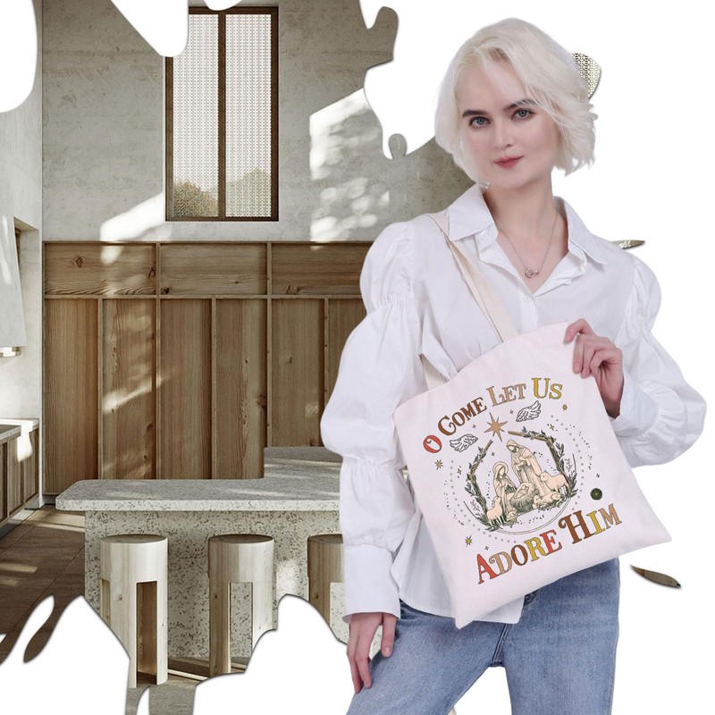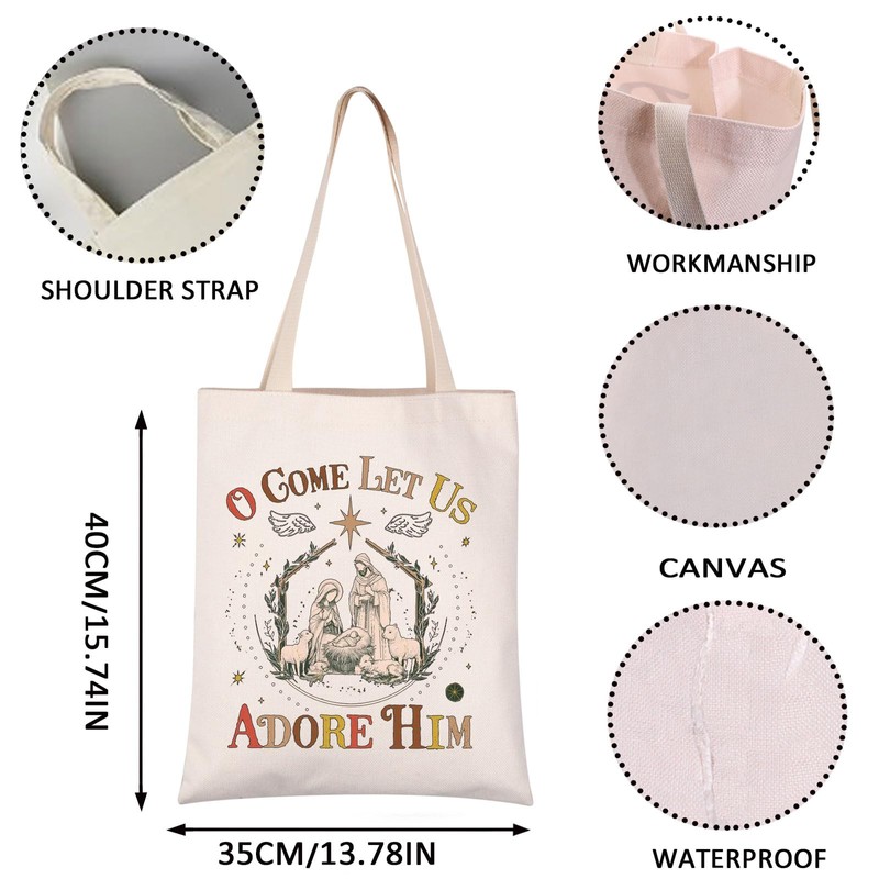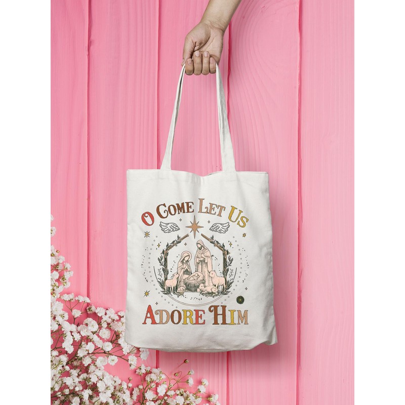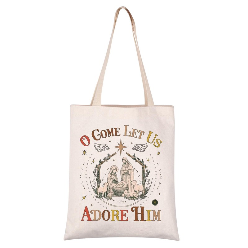 Christian Bible Verse Canvas Tote Bag Religious Christian Gift O Come Let Us Adore Him Merch Gift For Laywoman (ADORE HIM tote CA)