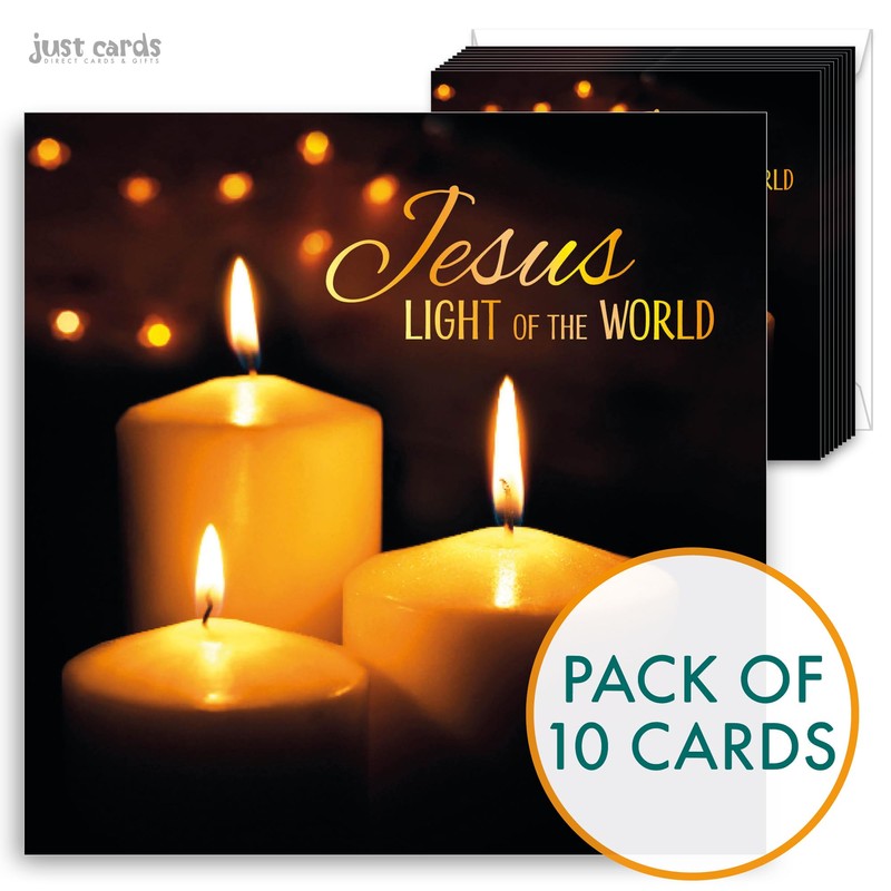 Christian Christmas cards, pack of 10 - Jesus Light of the World Christmas cards pack with Bible verse John 8:12 inside these religious Christmas cards, by Just Cards Direct