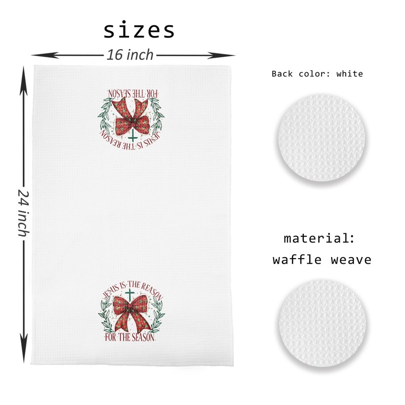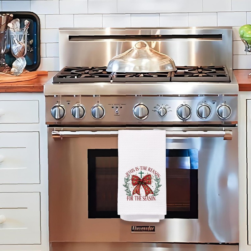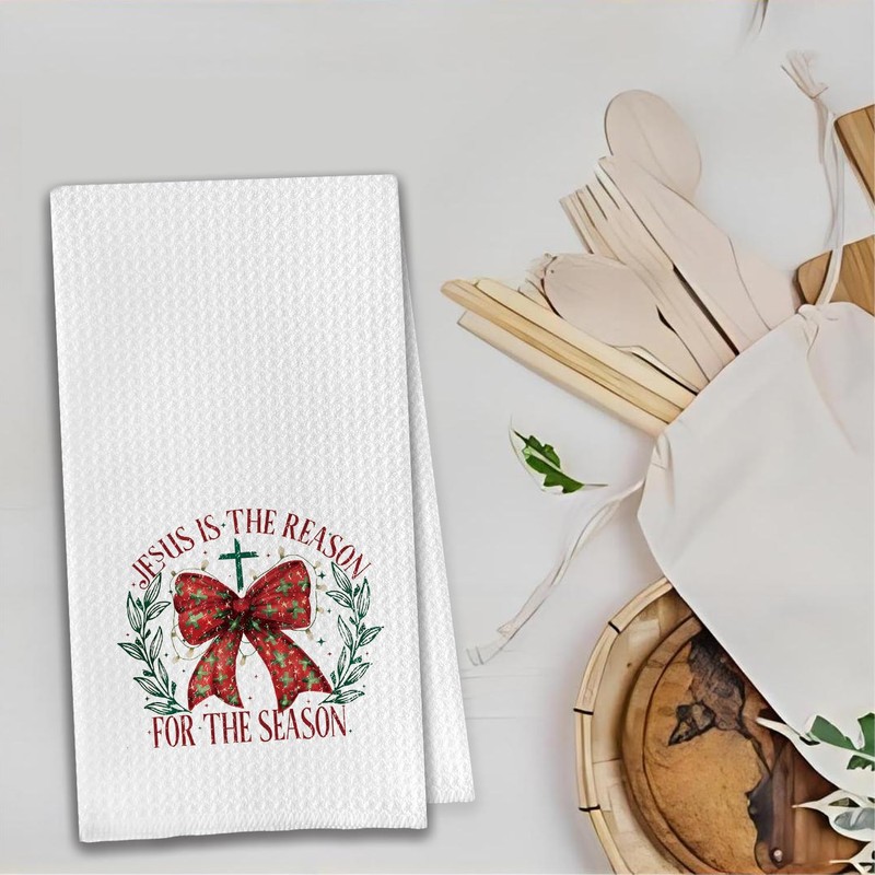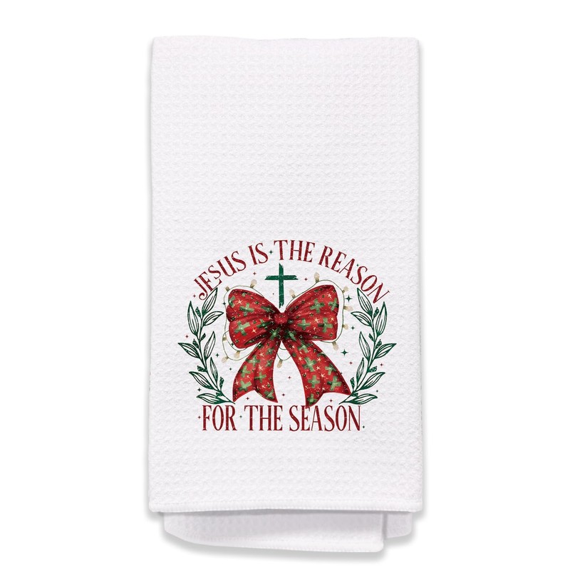 Christian Christmas Kitchen Towels, Jesus is the Reason for the Season Decor Hand Towels for Bathroom, Coquette Red Bow Christmas Dish Towels Tea Towels, Christmas Kitchen Bathroom Decor, 16x24 Inches