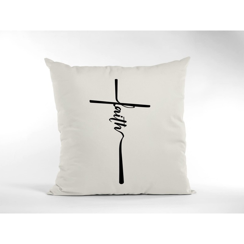 Christian Cushion Cover - Faith Scatter Cushion Home Accessory Pillow Bedroom Christian Cross Jesus - Natural Canvas 40x40cm
