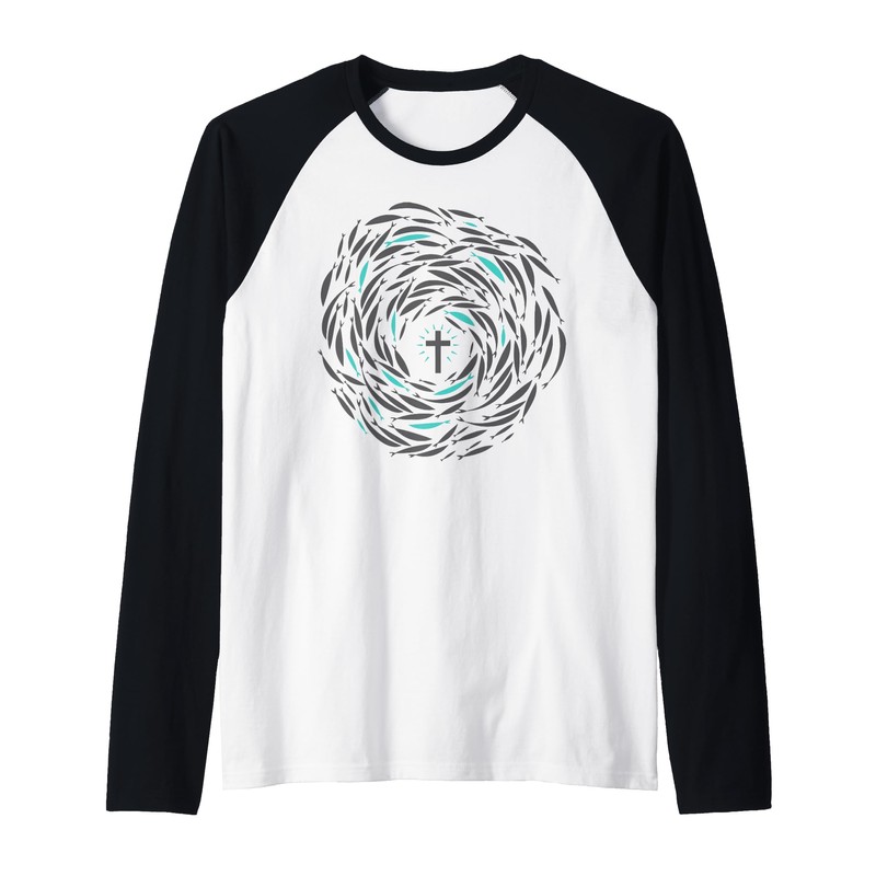 Christian Fish Swim with Cross Jesus Religious Apparel Raglan Baseball Tee