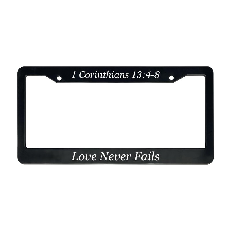 Christian License Plate Frame with Bible Verse Scripture Sayings (1 Corinthians 13:4-8, Pack of 1)
