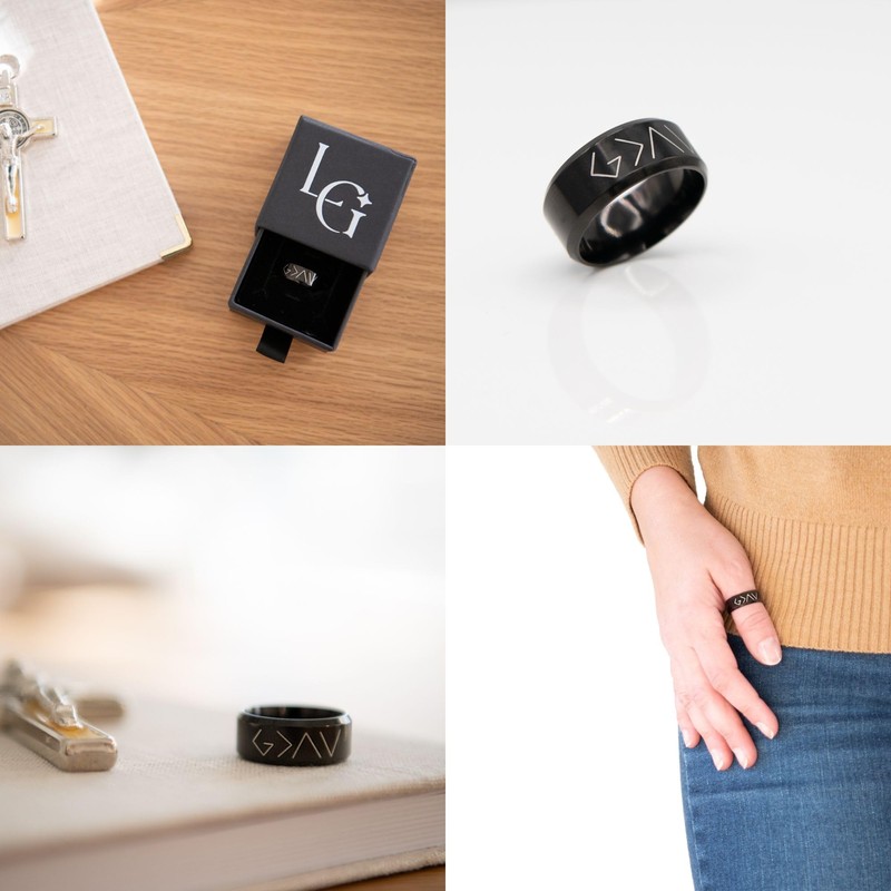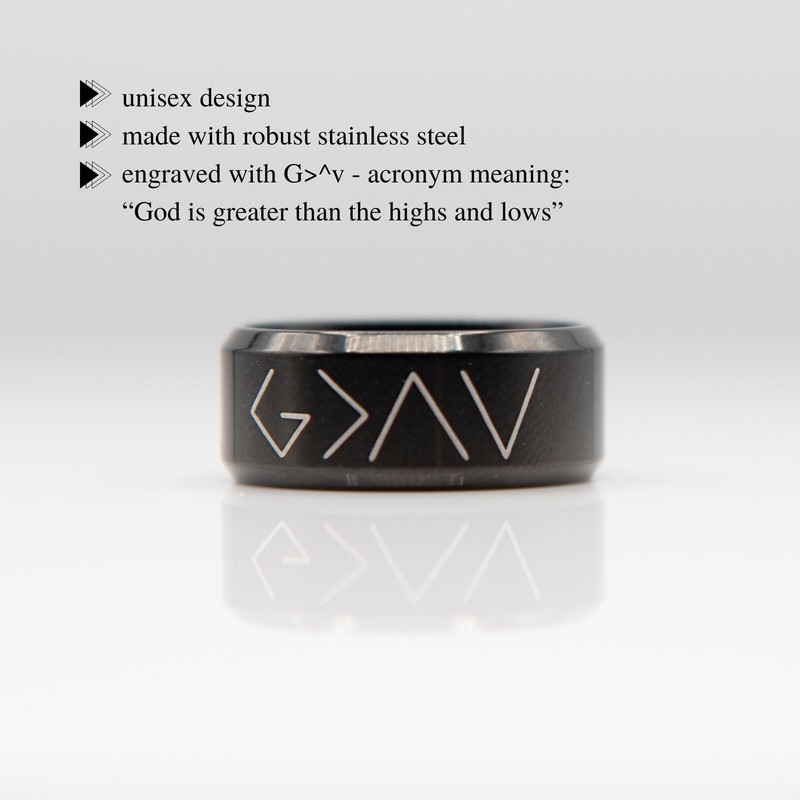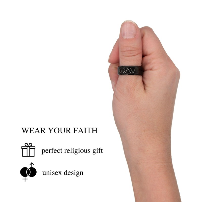 Christian Ring Highs and Lows (Black) Size 9 | God Is Greater Than The Highs And Lows Stainless Steel Ring, Christian Jewelry For Him or Her