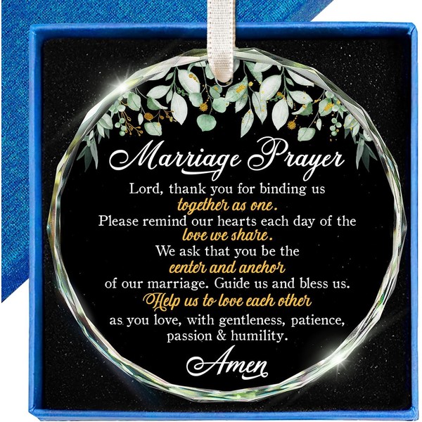 - MARRIAGE PRAYER ORNAMENT: Celebrate their sacred union with this beautifully designed glass ornament, a heartfelt gift symbolizing prayers for lasting love, faith, and unity. Thoughtfully crafted, it serves as a timeless reminder of the blessings you wish for their shared journey as husband and wife