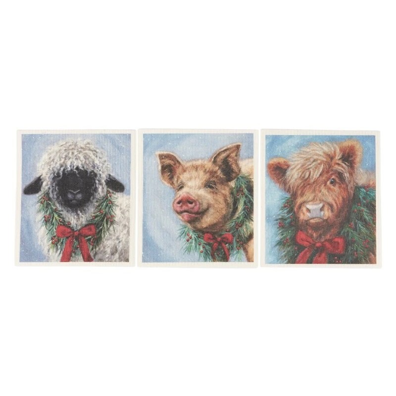 Christmas Animal Swedish Dishcloth Set of 3