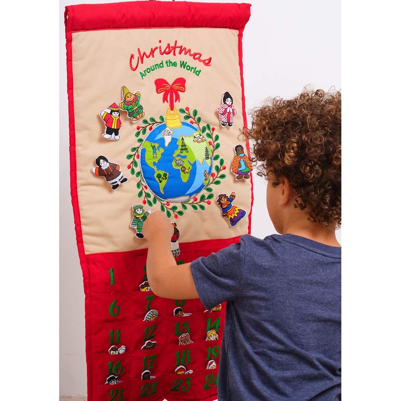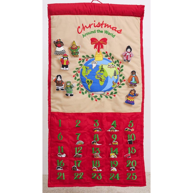 - EMBRACE CULTURES AROUND THE WORLD: Immerse yourself in the richness of Christmas traditions from around the world with this interactive advent calendar. Each day unveils a new country, providing a fun and educational experience for the entire family. Hanging top loop makes display easy and comes with a sturdy wooden dowel. Measures 14" wide x 30" high.