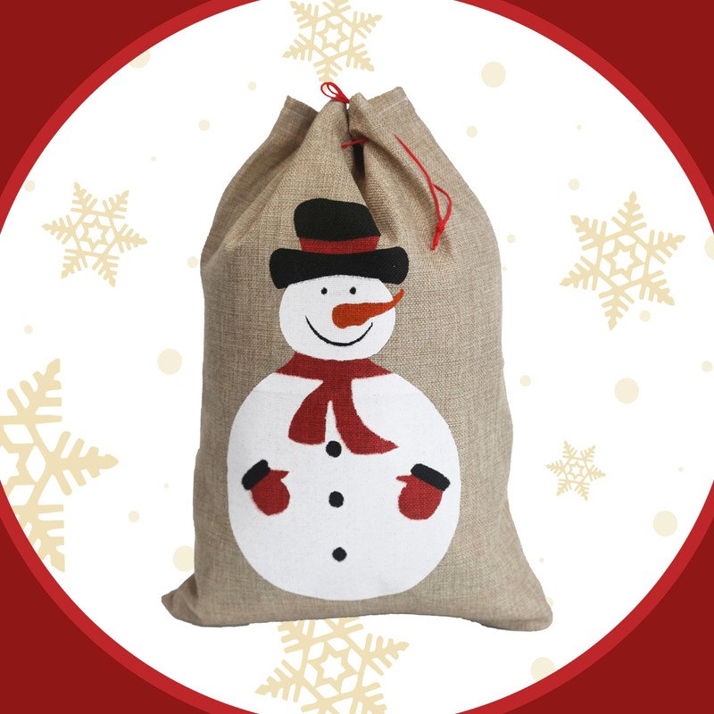 Make your gift with our beautiful jute drawstring bags. Each bag features a traditional Christmas design making it the perfect addition to your holiday season. Designs include Snowman, Tree, Boots, Stick and Penguin.