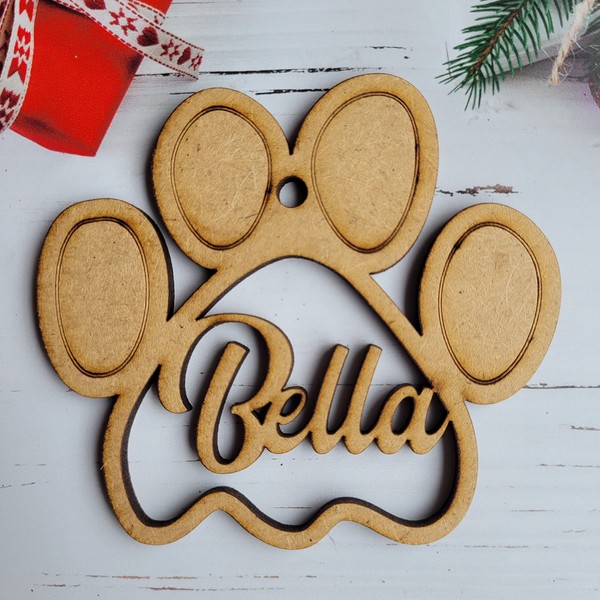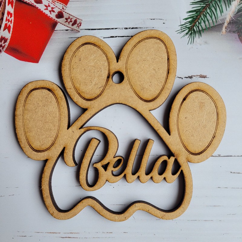 Christmas bauble dog paw pet cat mdf tree ornament