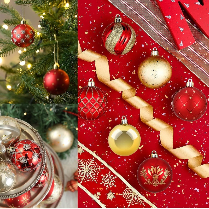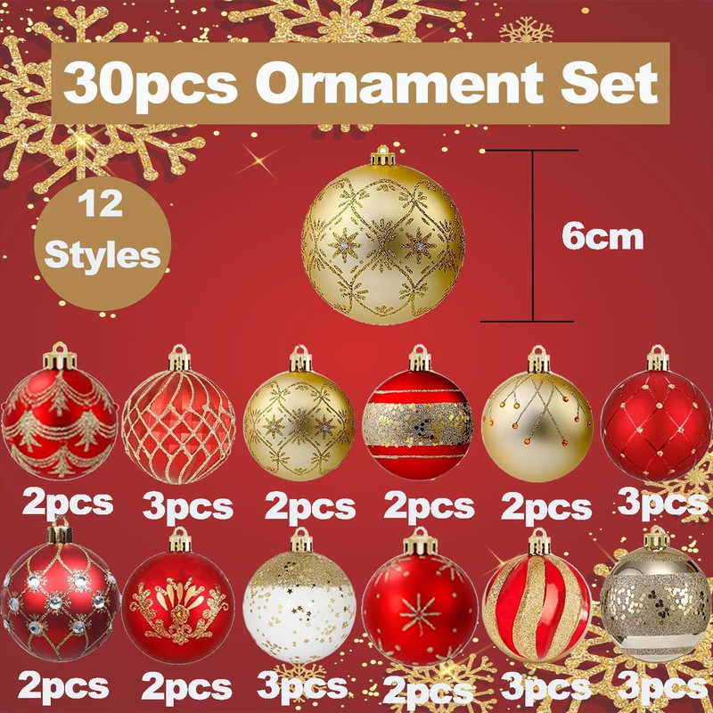- Exquisite craftsmanship – Christmas baubles plastic set there are 15 different exquisite styles, a total of 30 pieces 6 cm Christmas baubles red gold.