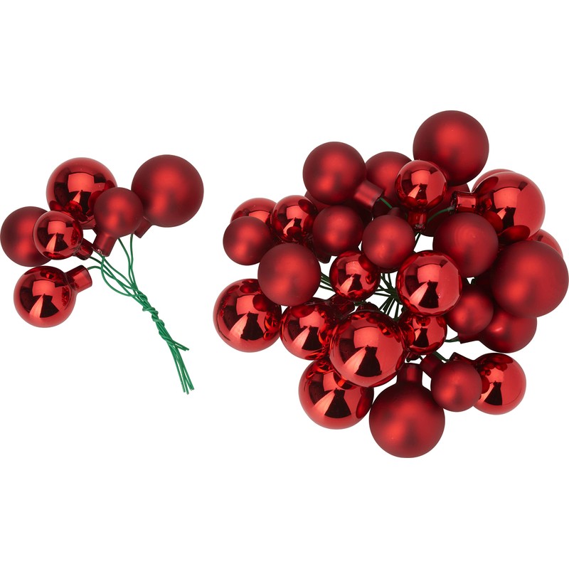 Christmas Baubles Glass on Wire 36 Pieces Diameter 20/25/30 mm Red Mix