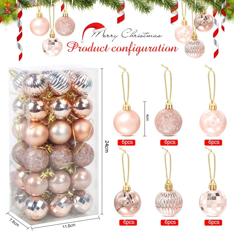Christmas Baubles Rose Gold 36 Pieces, Christmas Tree Baubles Plastic 4 cm, Christmas Tree Baubles, Christmas Baubles Tree Decoration Ornaments, Christmas Tree Baubles Set for Party Christmas